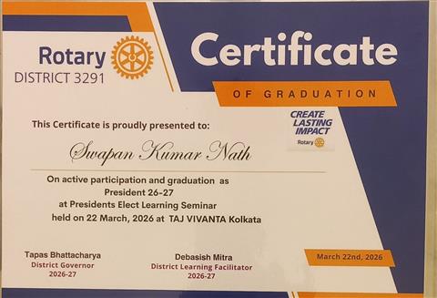President Elect Rtn. Swapan Nath attended President Elect Learning . . .